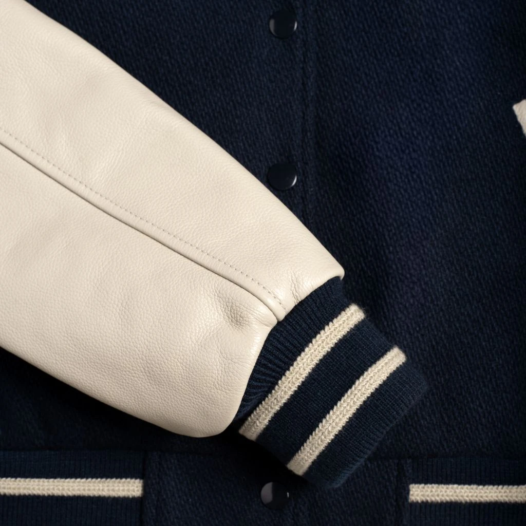 - Pebbled Leather Sleeves and Accent Details